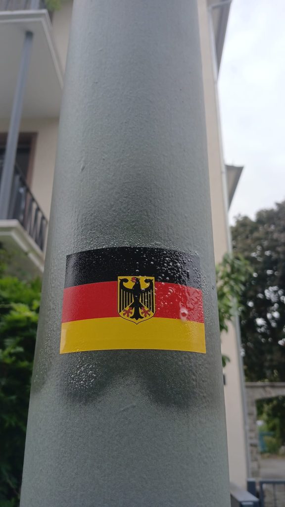In den Straßen unseres Viertels sind vermehrt rassistische Sticker aufgetaucht. Parolen gegen Geflüchtete und Menschen mit Migrationshintergrund sowie Bilder, welche unter anderem eine Muslima mit einer Bombe zeigen, sind vielen Menschen übel aufgestoßen. Doch das war es noch nicht: Über all im Viertel wurden rechte Schmierereien angebracht und die Sticker sowie ein Meer aus Deutschlandwimpeln wurde mit einer extrem hautreizenden Chemikalie besprüht. Vermutlich um die Höchster:innen zu verletzen, die keine rechte Propaganda in ihrem Viertel haben wollen.