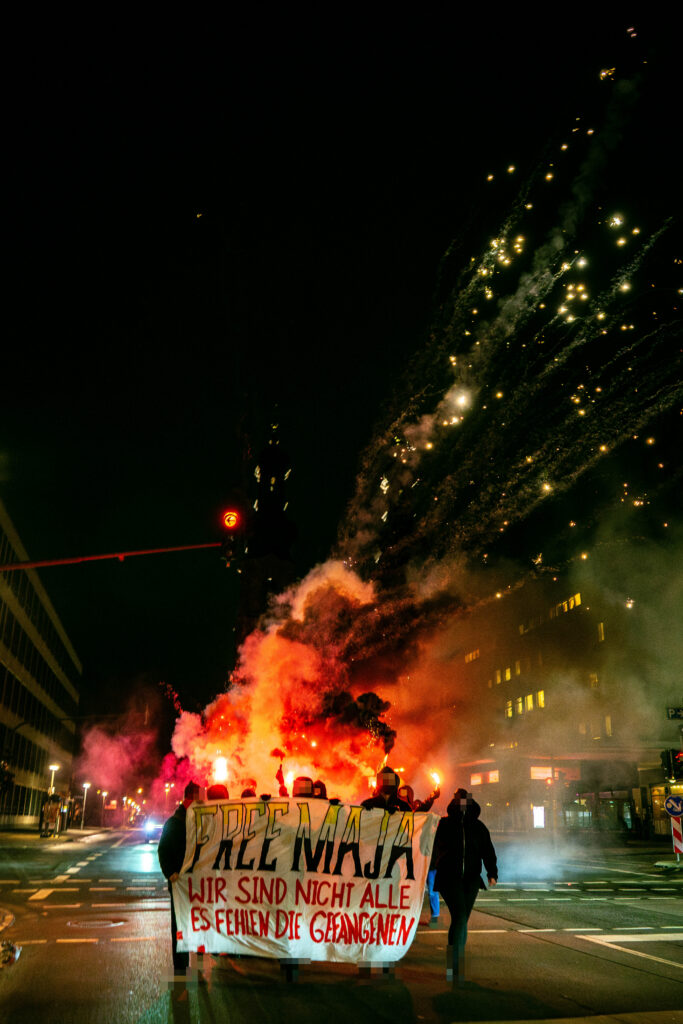 Anlässlich der gestrigen (04.02.26) Urteilsverkündung gegen unser*e Gefährt*in Maja in Budapest zu verdammten 8 Jahren Knast in Ungarn, nahmen wir uns in Mainz mit einer Sponti wütend und kraftvoll die Straße!